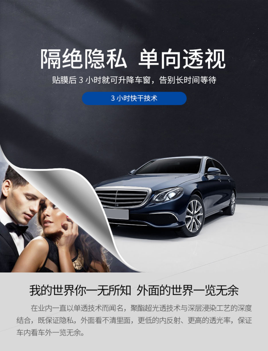 我们的产品是由聚酯和金属化涂层通过粘胶合成的一种很薄的膜。此膜安装在玻璃的表面以提供显著的阳光保护性能。它能阻挡太阳热置、99%有害紫外线及耀眼的、不适的眩目强光,同时允许眩目控制的日光通过。我们的产品适合季节的变化,夏季能反射炽热太阳的热量,而冬季具有低辐射率膜以再辐射热量,全年你都会感到舒适。